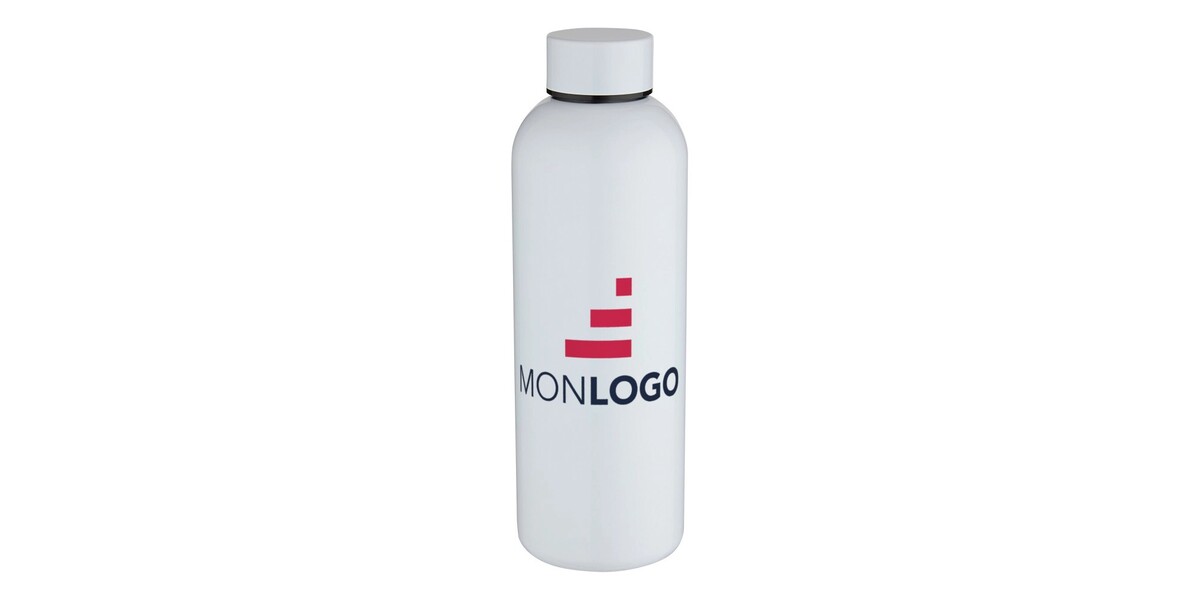 La gourde Spring à simple paroi en acier inoxydable recyclé certifié RCS est munie d’un bouchon à vis et d’un revêtement spécial sur l’extérieur qui permet une impression par sublimation.
