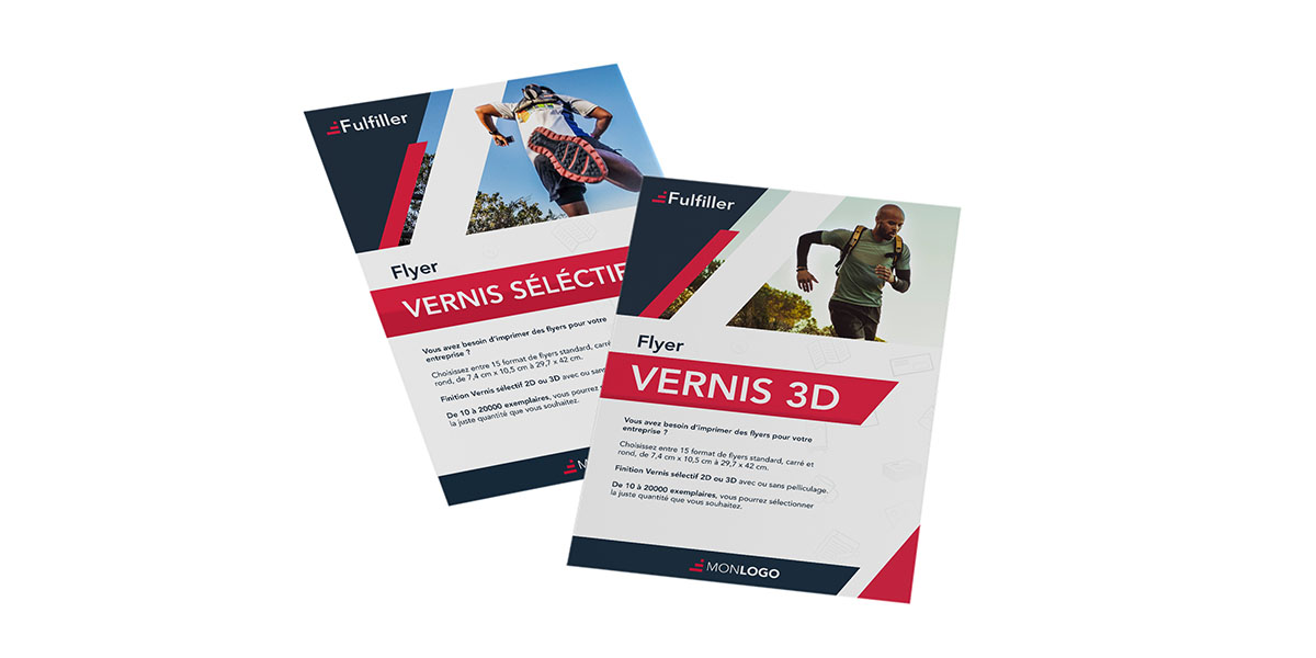 Dès 10 exemplaires, commandez au meilleur prix vos flyers haut de gamme avec vernis sélectif classique ou vernis sélectif 3D.