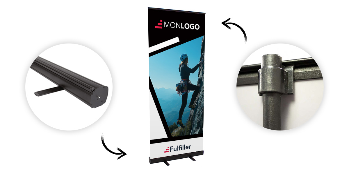 Avec Fulfiller, commandez facilement votre roll up personnalisé grâce à la plus grande gamme de roll UP made In Régions dès 24H Chrono.