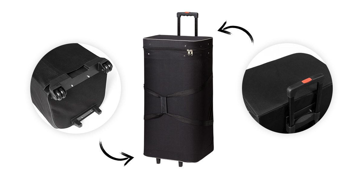Grâce à son système trolley intégré (roulettes robustes et poignée télescopique), cette valise permet de déplacer facilement des supports de communication parfois lourds ou encombrants, sans effort et en toute sécurité. Elle est parfaitement adaptée aux déplacements fréquents en voiture, en train ou dans les halls d’exposition.